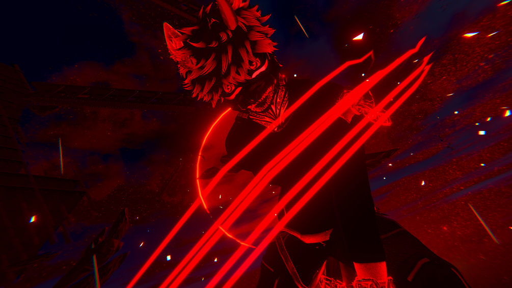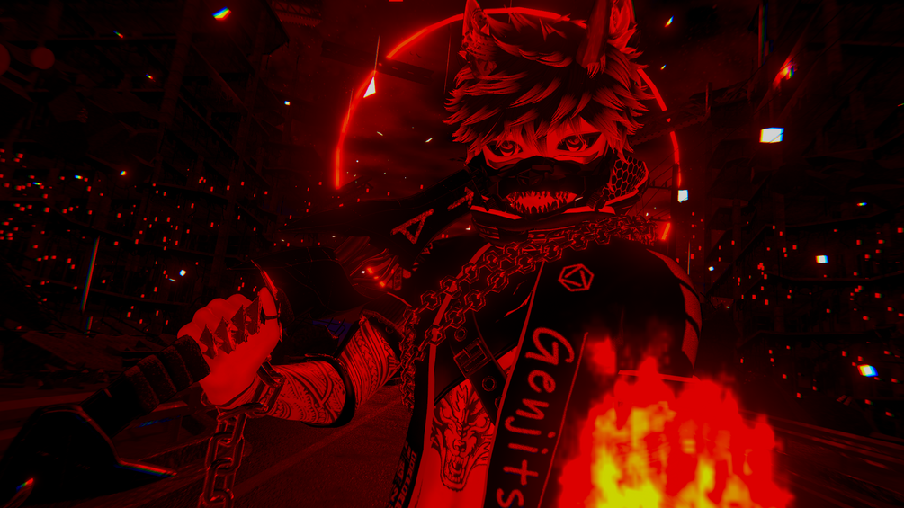 Jinxxy.com tags: avatar, quest, green, optimized, male, dark, cute, hot, sexy, black, red, vr, vrchat, vr chat, dps, sps, gogo, loco, goloco, face tracking, facetracking, eye tracking, eyetracking, yami, genjitsu, wolf, okami